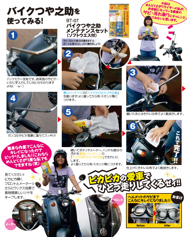 ②使用本劑後,透過保護膜讓汙垢與鏽不容易產生。也有研磨般的光澤。